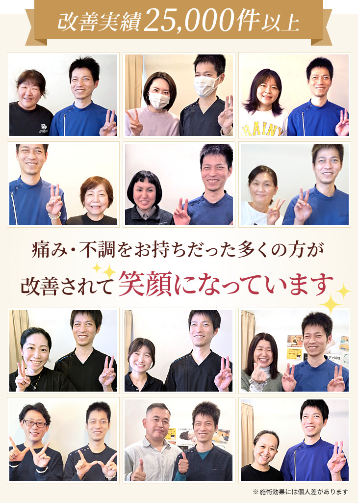 - 真剣に身体に向き合えない方…自律神経の乱れで起きる不調は、整体だけでは改善していきません。日々の生活を見直すと症状は改善の方向に向かっていきます。また、当院でお伝えしているアドバイスを取り入れていただければ理想の健康を手に入れることが出来ます。