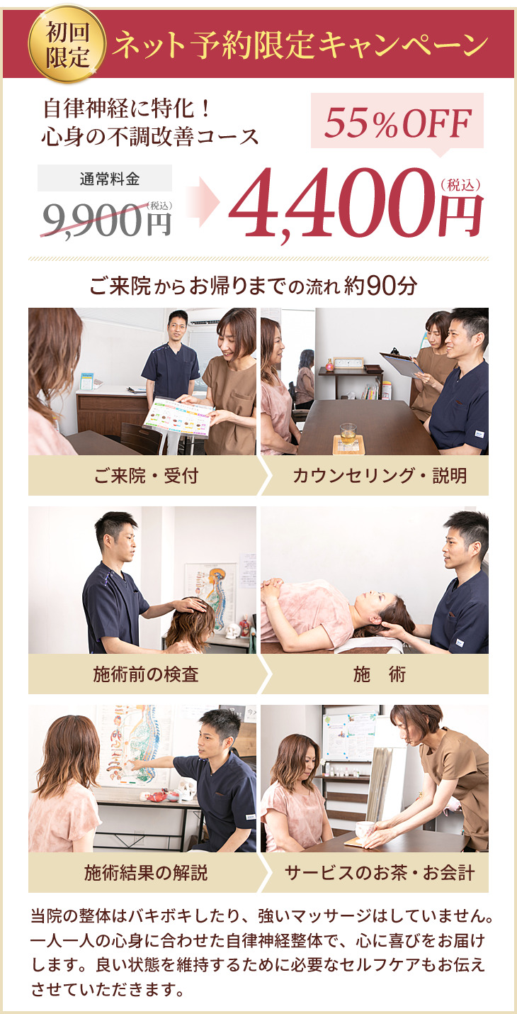 一人一人の心身に合わせた自律神経整体で、心に喜びをお届けします。